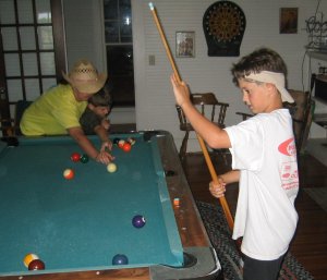 Playing pool at the Cook-Stasney Ranch in Albany, TX (June, 2005)
